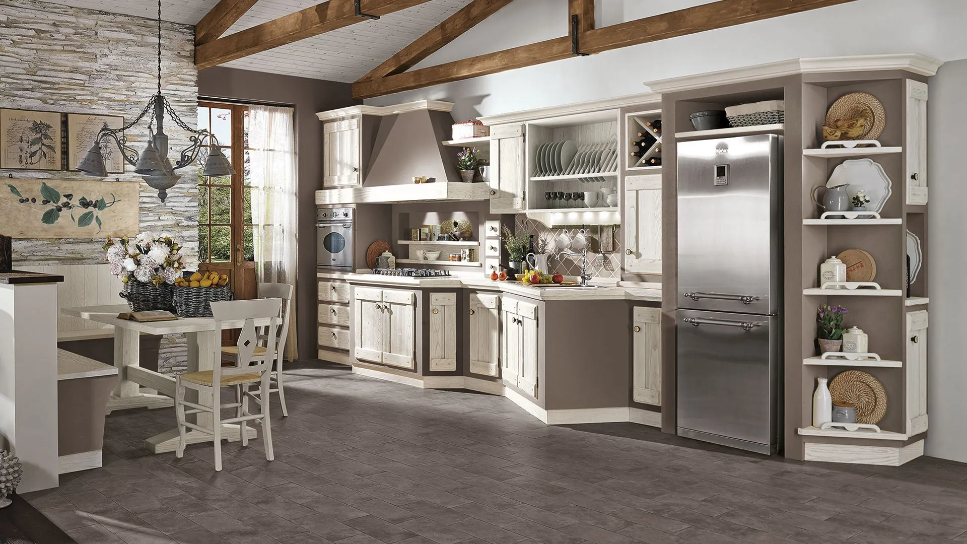 Borgo Antico rappresenta il connubio perfetto tra carattere tradizionale e contemporaneo nella cucina. Il legno, le cesellature e le anticature riescono a far rivivere il calore e l’accoglienza dell’ambiente familiare, ma in veste contemporanea. Scegli la tua cucina Borgo Antico.